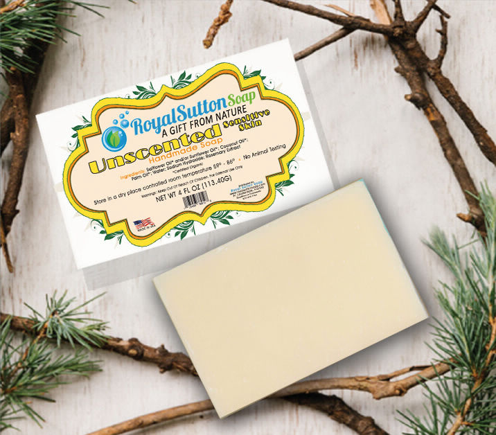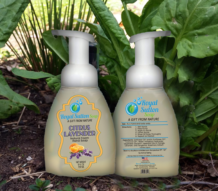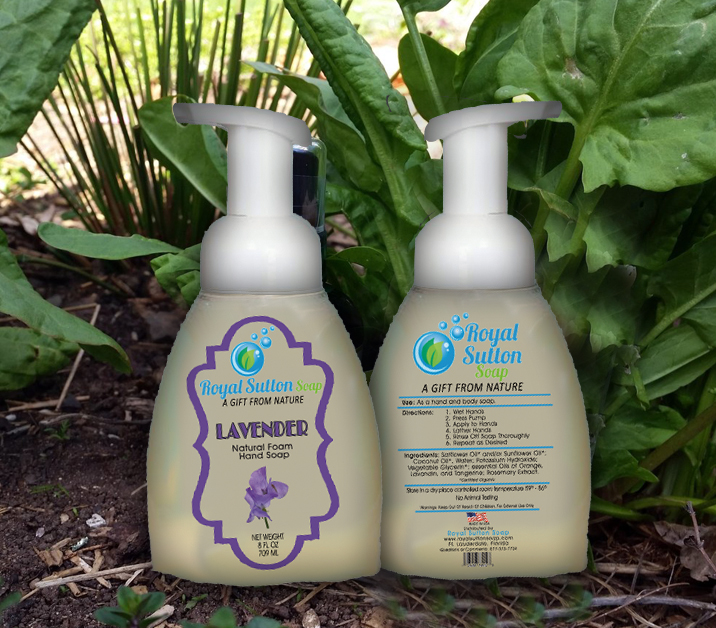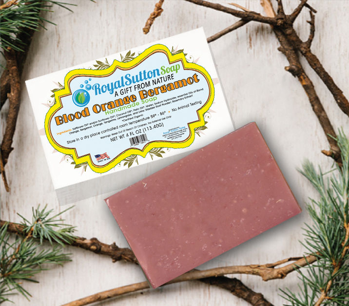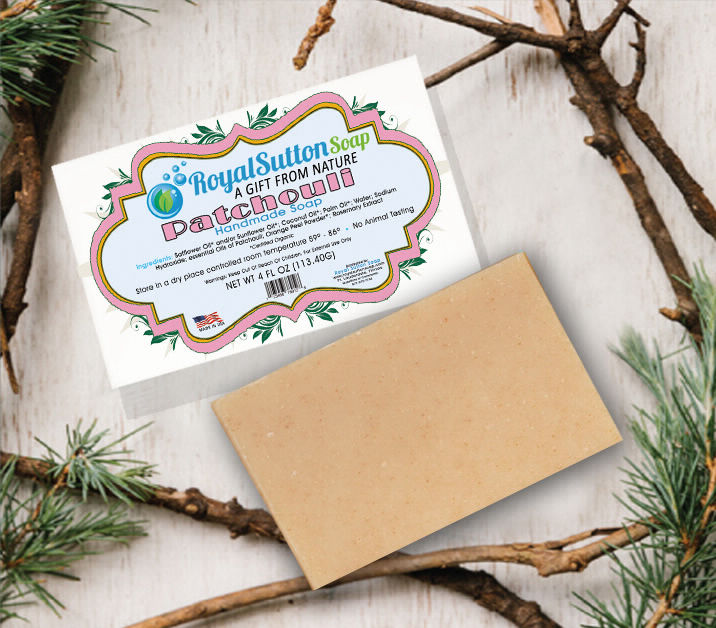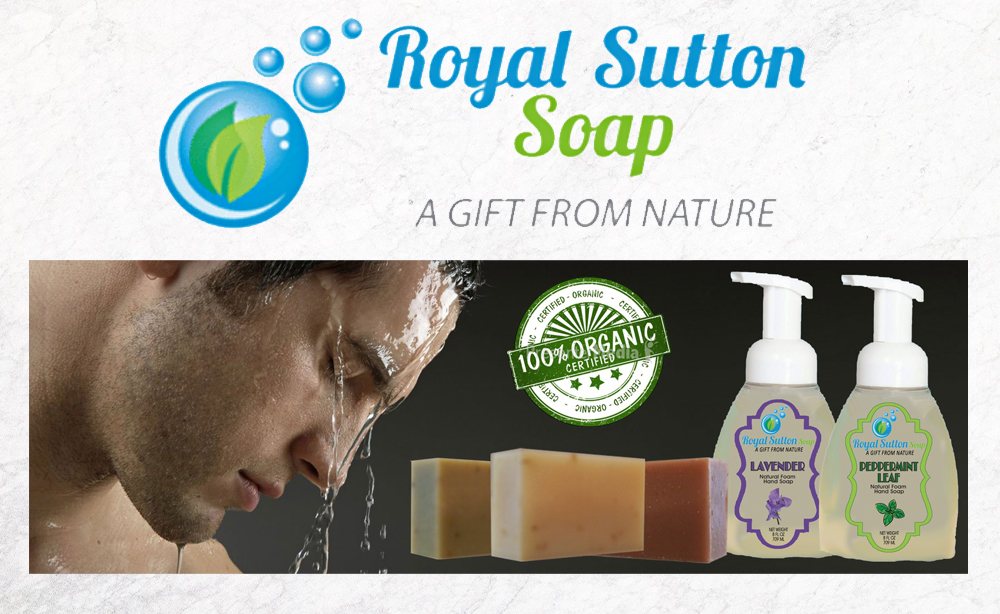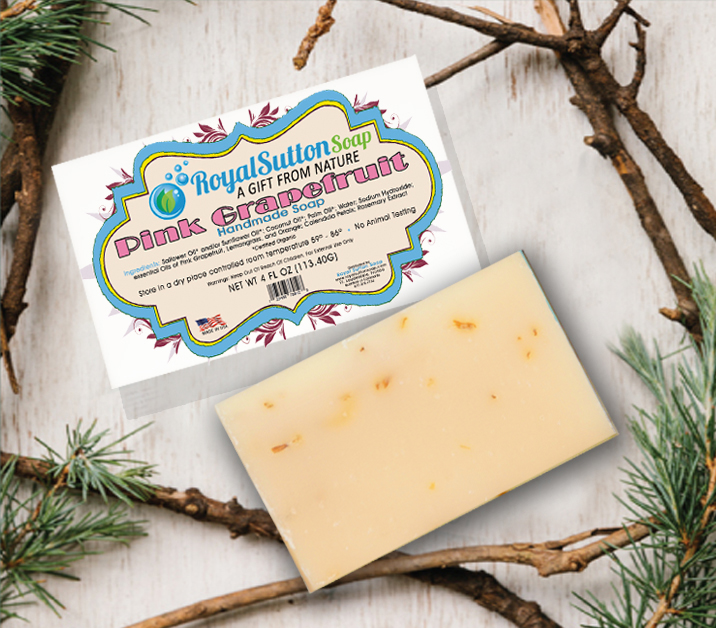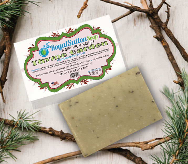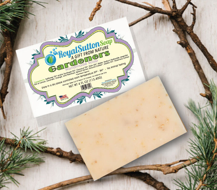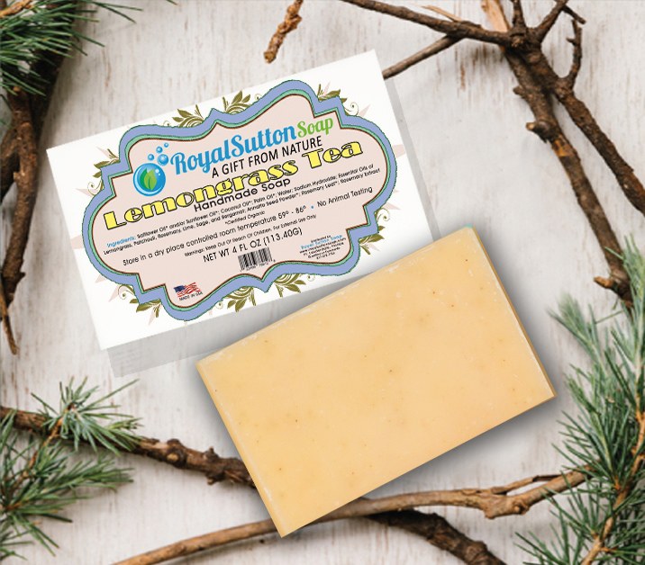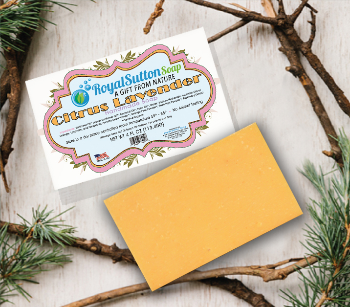 Royal Sutton Soap custom label design, reflecting earth environment tone with defining colors & shape.