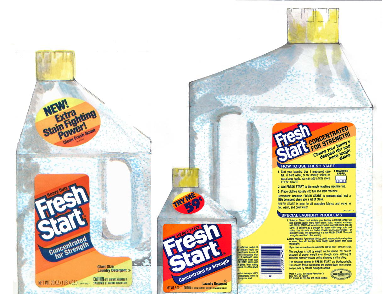 Colgate Palmolive Fresh Start label. Originator concept of boot label design die and injection
