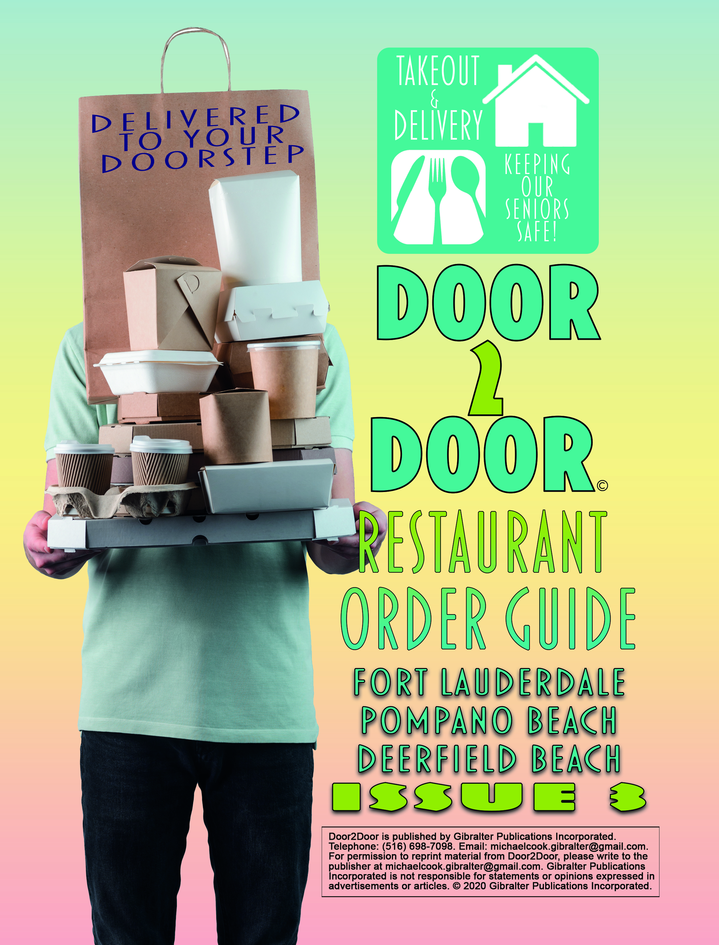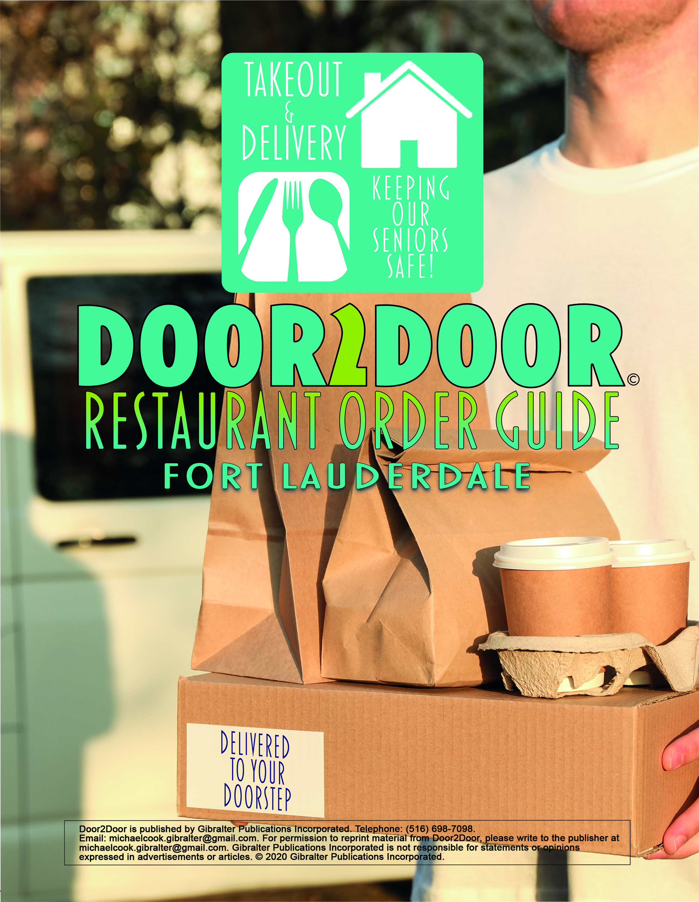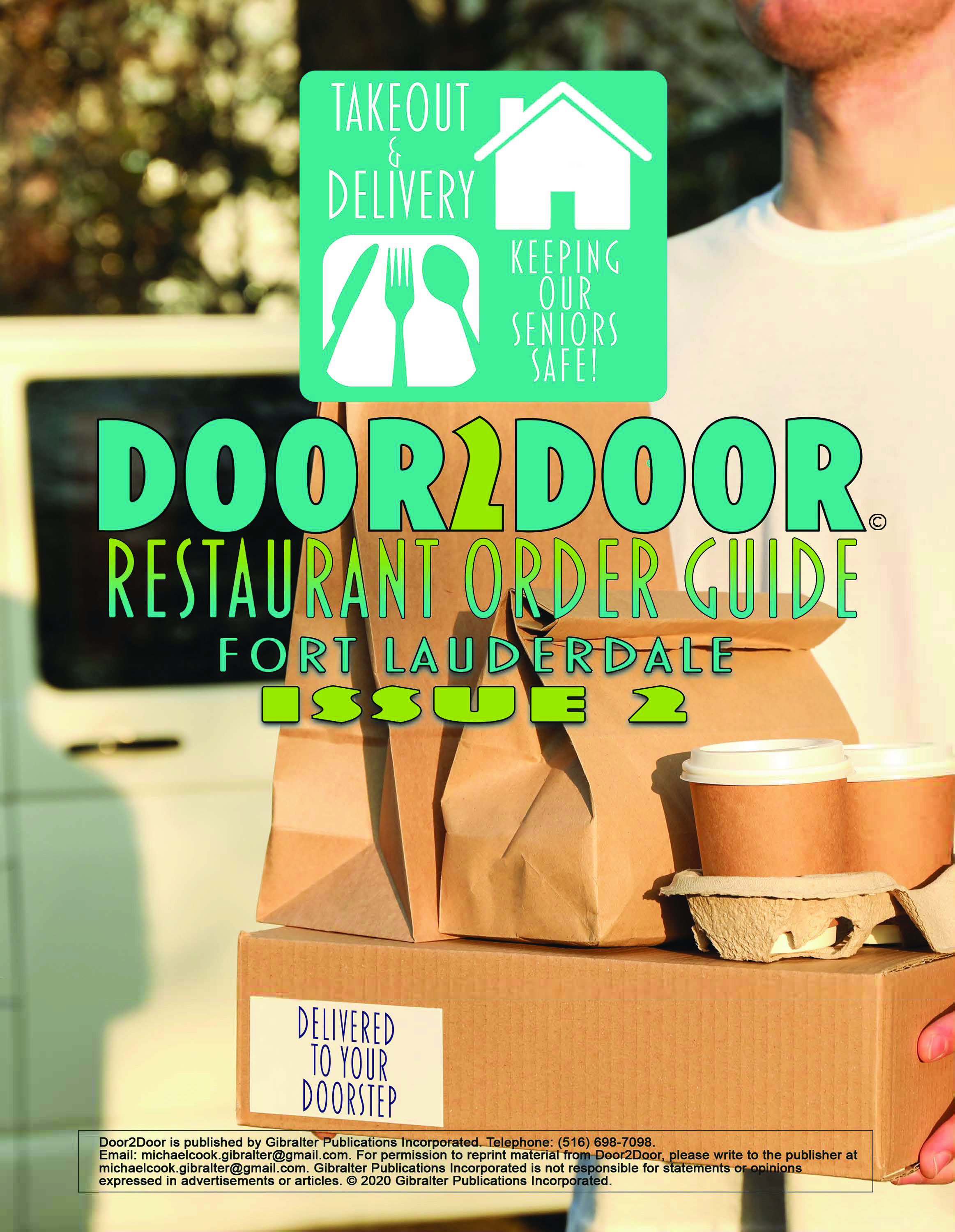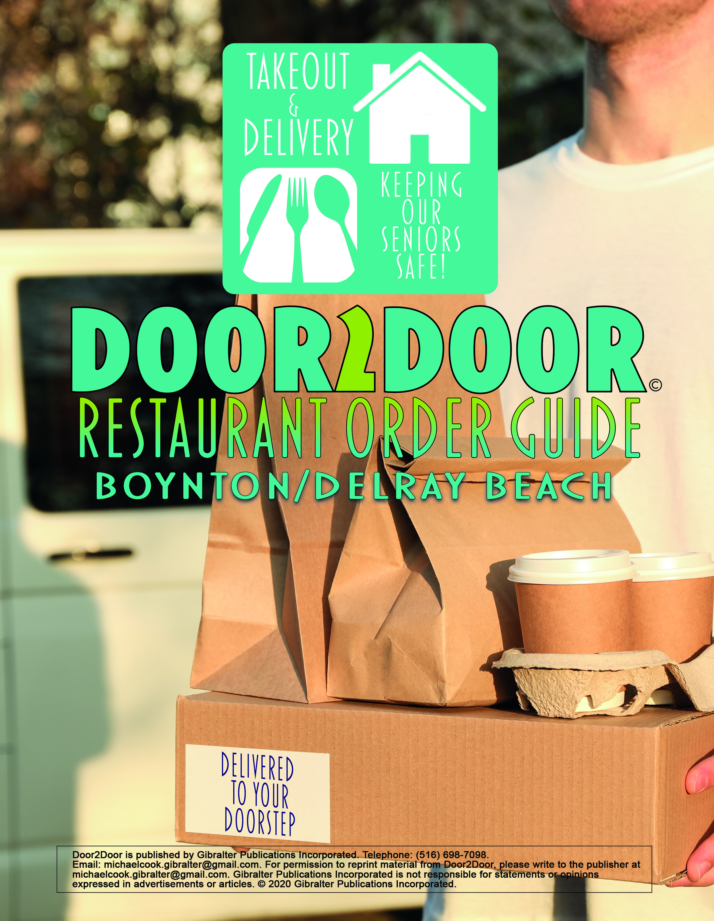 Restaurant advertising menu available to order and deliver food safely to your door or pickup from our door to your car.